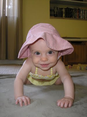 Each month I am falling more and more behind on these pics! Nevertheless, here is sweet Millie in the midst of her 7th month. She just HAD to show off her darling swimsuit. A great borrow thanks to the Gawron girls!